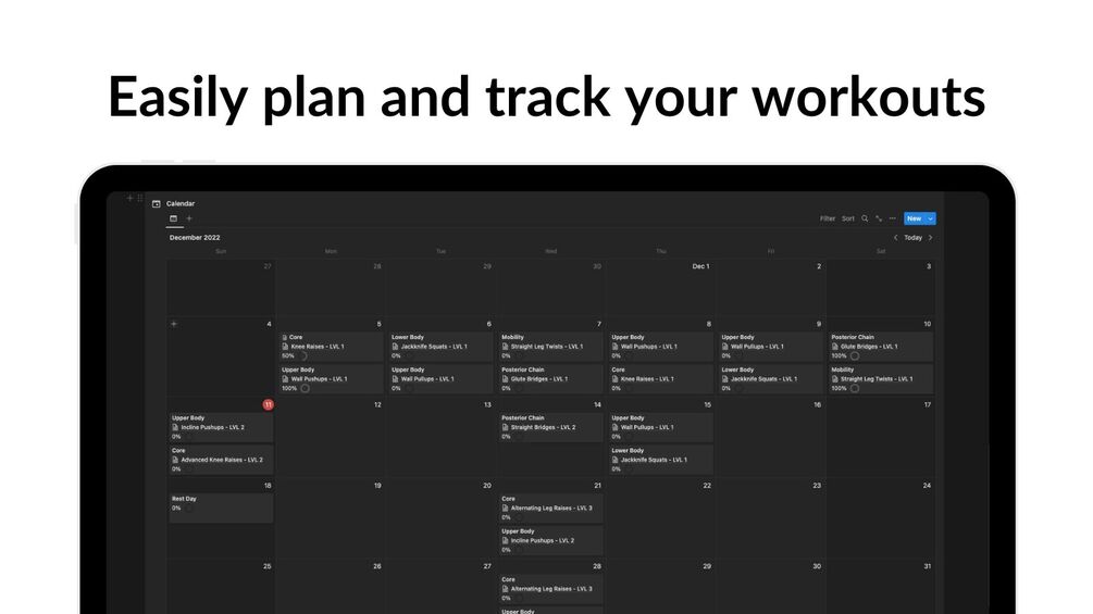 - Calendar to track and plan workouts