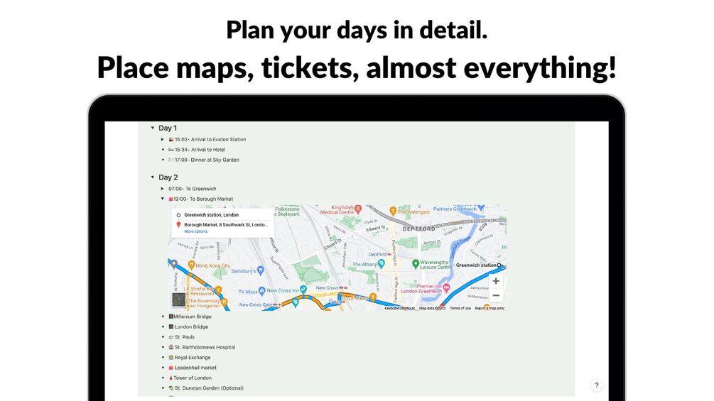 2. Maps. Quickly access the maps that you'll need by embedding them into your itinerary!